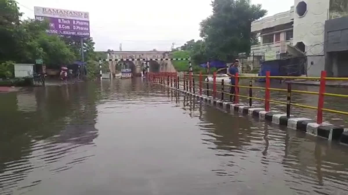 हरिद्वार। उत्तराखंड में हो रही मूसलाधार बारिश ने लोगों को घरों के अंदर कैद रहने पर मजबूर कर दिया है। हरिद्वार के रानीपुर मोड़ और भगत सिंह चौक पानी से जलमग्न हो गये हैं। सड़कें पानी से लबालब भरी हैं। सड़कों पर कई फीट पानी भरा है। वाहनों को कई फीट पानी से होकर गुजरना पड़ रहा है। खास बात है कि इसी मार्ग से जिला मुख्यालय जाया जाता है।