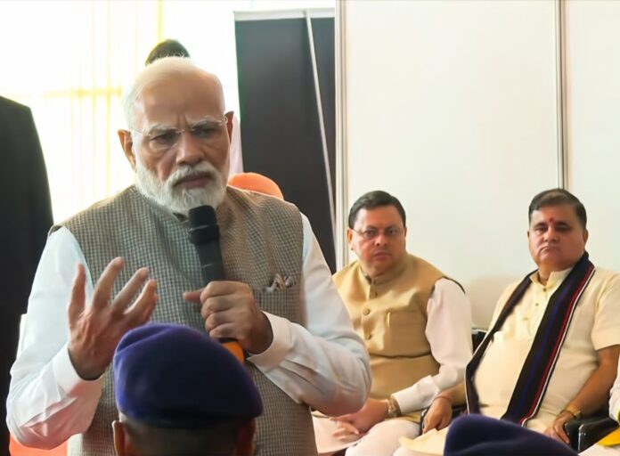 देहरादून। उत्तराखंड में प्राकृतिक आपदा से हुए नुकसान का जायजा लेने पहुंचे प्रधानमंत्री नरेंद्र मोदी ने गुरुवार को जौलीग्रांट एअरपोर्ट पर आपदा राहत कार्यों की गहन समीक्षा की। प्रधानमंत्री ने इस दौरान अलग-अलग क्षेत्रों में आपदा से हुए नुकसान का विस्तार से जानकारी लेने के साथ ही राहत एवं बचाव कार्यों की ताजा स्थिति और भविष्य की चुनौतियों पर राज्यपाल ले.ज. गुरमीत सिंह (से.नि.), मुख्यमंत्री पुष्कर सिंह धामी, केन्द्रीय राज्य मंत्री अजय टम्टा तथा राज्य के सांसदों सहित वरिष्ठ अधिकारियों के साथ विचार-विमर्श किया। प्रधानमंत्री नरेंद्र मोदी ने धराली, थराली सहित राज्य के आपदा प्रभावित अन्य क्षेत्रों में संचालित राहत एवं बचाव अभियानों में एनडीआरएफ, एसडीआरएफ सहित राज्य सरकार के विभिन्न विभागों के प्रयासों की सराहना की और राहत बचाव कार्यों में जुटे राज्य व केन्द्र सरकार के संगठनों के कार्मिकों से भेंट कर उनके अनुभव साझा किए। प्रधानमंत्री ने आपदा पीड़ितों से भी मुलाकात कर उनका ढांढस बंधाने के साथ ही समुचित मदद का भरोसा दिलाया।