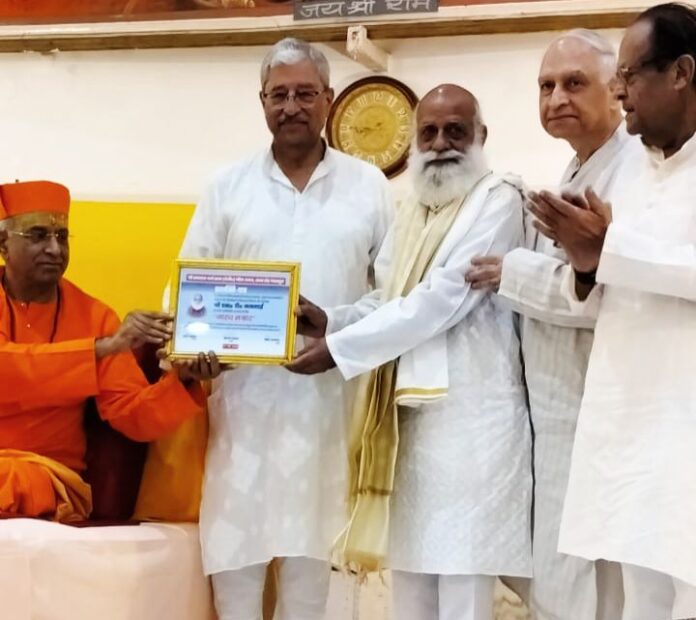 देहरादून। मेघदूत नाट्य संस्था के संस्थापक और प्रसिद्ध रंगकर्मी एस.पी. ममगाईं को छह दशक से अधिक की रंगकर्म साधना और नाट्य निर्देशन, लेखन तथा अभिनय के क्षेत्र में उल्लेखनीय योगदान के लिए श्री सनातन धर्म सभा, गीता भवन देहरादून ने बीती शाम नाट्य सम्राट अलंकरण से विभूषित किया। मौका था गीता भवन में चल रही रामकथा के समापन समारोह का। इस रामकथा में प्रसिद्ध रामकथा मर्मज्ञ रामकिंकर जी के शिष्य मैथिलीशरण प्रवचन कर रहे थे। श्री ममगाईं को यह सम्मान मानस मर्मज्ञ मैथिलीशरण के हाथों प्रदान किया गया। सनातन धर्म सभा के अध्यक्ष राकेश ओबेरॉय, सचिव विपिन नागलिया और गुलशन खुराना भी इस अवसर पर मौजूद थे।