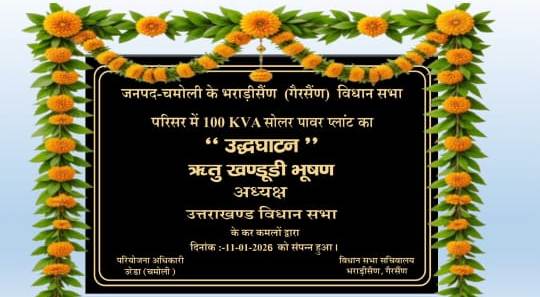 देहरादून। उत्तराखंड विधानसभा अध्यक्ष एवं कोटद्वार विधायक ऋतु खण्डूडी भूषण ने जनपद चमोली के भराड़ीसैंण (गैरसैंण) स्थित उत्तराखंड विधानसभा परिसर में 54.10 लाख रुपये की लागत से स्थापित 100 केवीए क्षमता के सोलर पावर प्वाइंट के उद्घाटन पर समस्त उत्तराखंडवासियों को शुभकामनाएं दीं। उन्होंने इसे भराड़ीसैंण को पर्यावरण-अनुकूल, ऊर्जा-आत्मनिर्भर एवं आधुनिक विधाननगरी के रूप में विकसित करने की दिशा में एक महत्वपूर्ण उपलब्धि बताया।