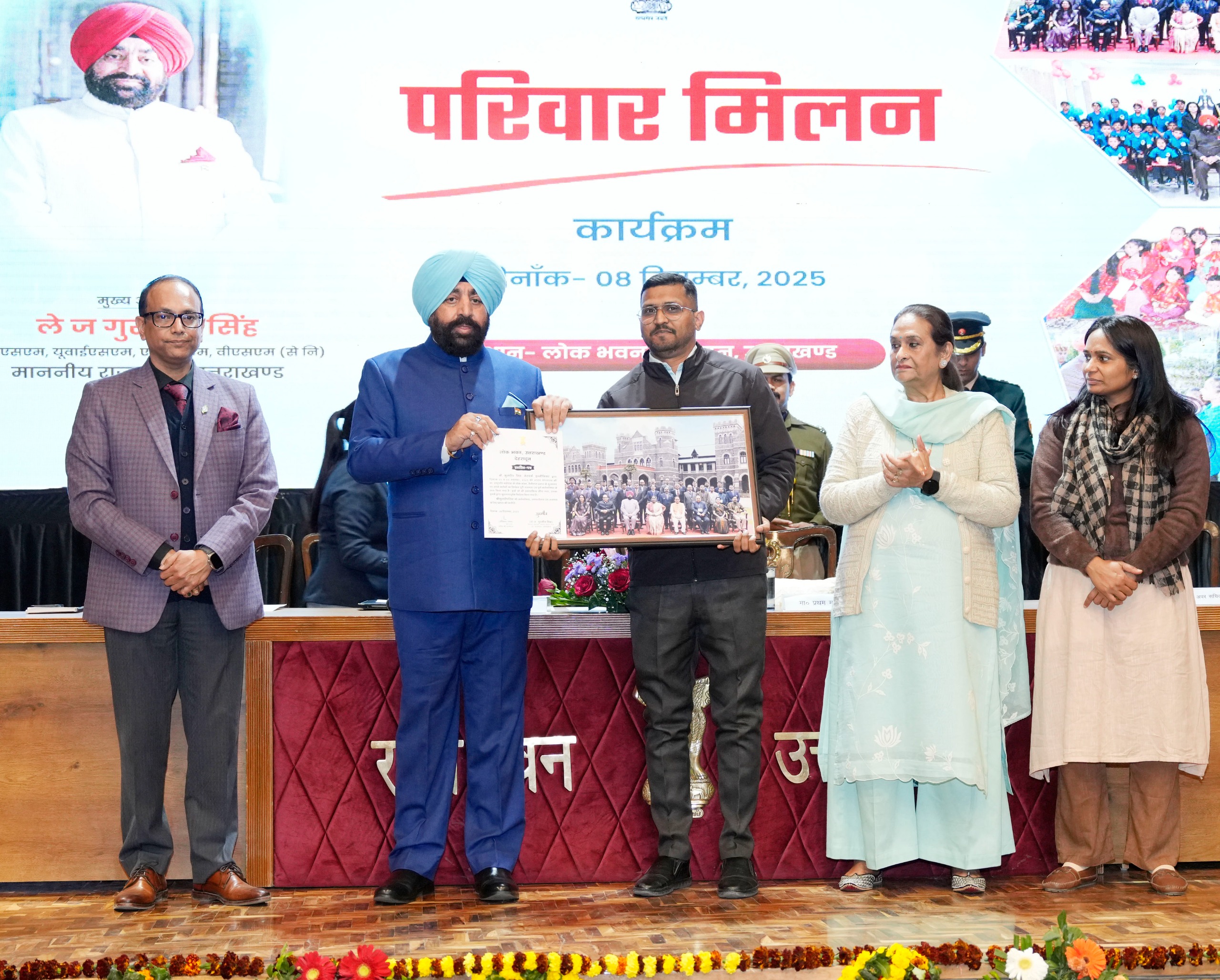 देहरादून। लोक भवन देहरादून में “परिवार मिलन समारोह” आयोजित किया गया, जिसमें राज्यपाल लेफ्टिनेंट जनरल गुरमीत सिंह (से नि) एवं प्रथम महिला गुरमीत कौर ने लोक भवन परिवार के अधिकारियों, कर्मचारियों एवं उनके परिवारजनों के साथ प्रतिभाग किया। इस अवसर पर राज्यपाल ने कर्मचारियों की व्यक्तिगत एवं कार्यालय संबंधी समस्याएं विस्तार से सुनीं और उनके त्वरित एवं प्रभावी समाधान का आश्वासन दिया। राज्यपाल द्वारा प्रत्येक छह माह में परिवार मिलन कार्यक्रम आयोजित किया जाता है, जिसके माध्यम से लोक भवन में कार्यरत कार्मिकों की समस्याओं का गंभीरतापूर्वक संज्ञान लेकर उनका समाधान किया जाता है।