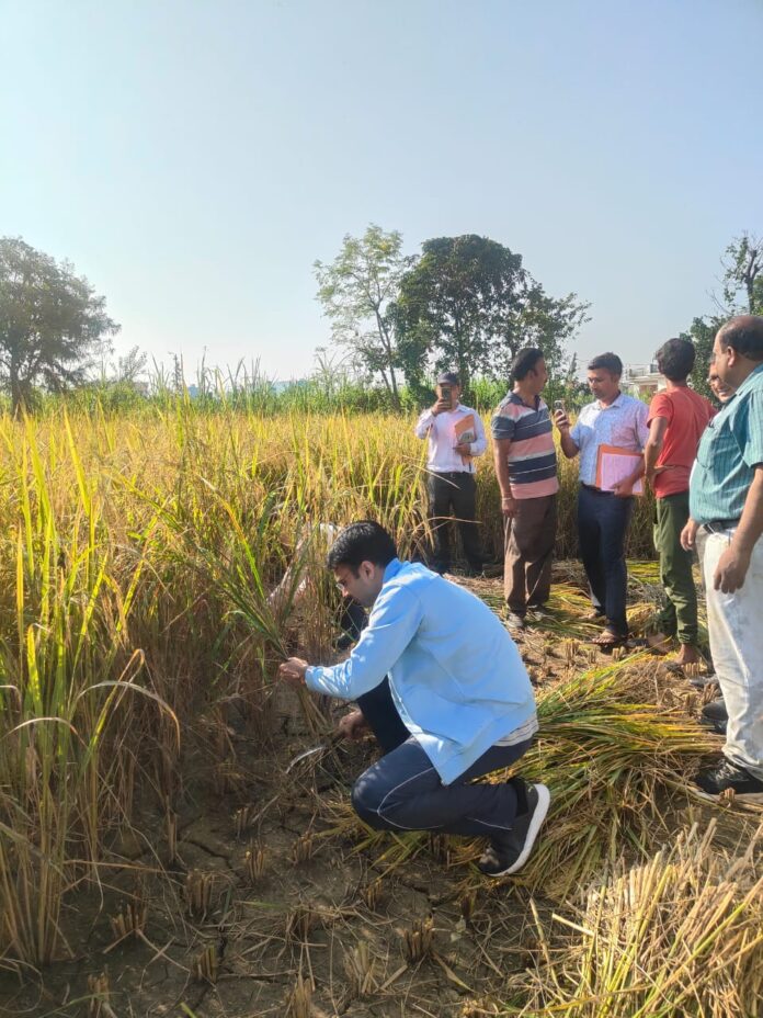 देहरादून। जिलाधिकारी सविन बंसल ने तहसील देहरादून के ग्राम आर्केडियाग्रांट में फसल धान के फसल कटाई प्रयोग का निरीक्षण किया। इस दौरान जिलाधिकारी ने कृषकों संग खेत में धान की कटाई भी की। जिसमें 43.30वर्ग मीटर के प्लॉट में 17 किलो 500ग्राम धान की उपज प्राप्त हुई प्रयोग का संपादन राजस्व उप निरीक्षक द्वारा जी सी ई एस एवं सीसीई एग्री ऐप द्वारा किया गया एवं खेत से ही उत्पादन के डाटा को भारत सरकार के पोर्टल पर अपलोड किया गया उक्त आंकड़ों का प्रयोग फसलों के औसत उपज एवं प्रधानमंत्री फसल बीमा योजना अंतर्गत किया जाता है।