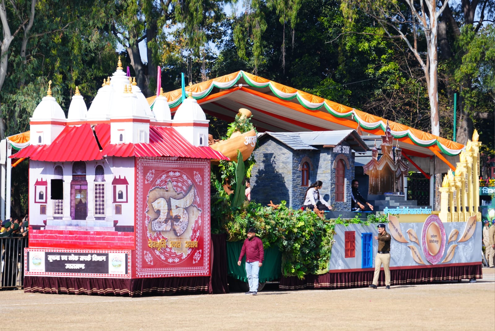 देहरादून। गणतंत्र दिवस के अवसर पर परेड ग्राउंड देहरादून में राज्य स्तरीय समारोह में सूचना विभाग की झांकी ने लगातार तीसरी बार प्रथम स्थान प्राप्त किया। ‘‘रजत जयंती एवं शीतकालीन धार्मिक यात्रा व पर्यटन’’ पर आधारित इस झांकी में राज्य के पच्चीस वर्षों की विकास यात्रा के साथ ही तीर्थाटन एवं पर्यटन विकास से जुड़े पहलुओं को दिखाया गया।