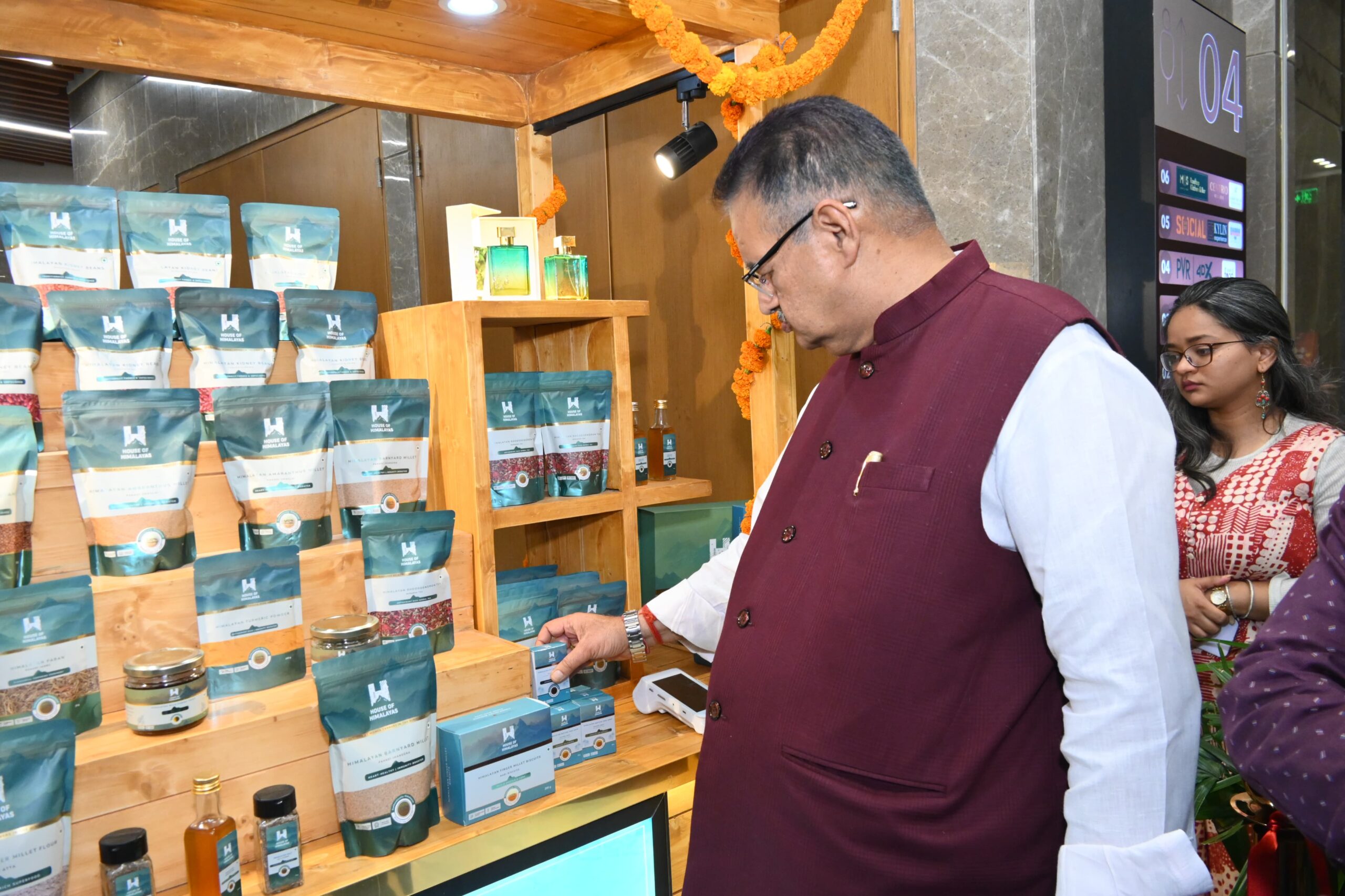 देहरादून। ग्राम्य विकास मंत्री गणेश जोशी ने देहरादून स्थित हाथीबड़कला स्थित सेन्ट्रियो मॉल में हाउस ऑफ हिमालयाज के कार्ट का शुभारम्भ किया। इस अवसर पर उन्होंने स्टॉल पर प्रदर्शित उत्पादों का निरीक्षण किया और हाउस ऑफ हिमालयाज के तहत उपलब्ध विभिन्न स्थानीय उत्पादों की जानकारी ली। उन्होंने डिजिटल पेमेंट के माध्यम से कार्ट से खरीददारी भी की।