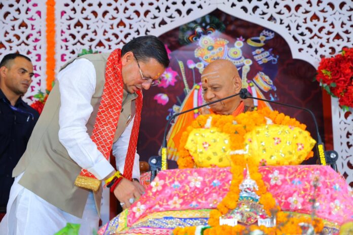 सीएम धामी वानप्रस्थ आश्रम में आयोजित श्रीमद्भागवत कथा में पहुंचे