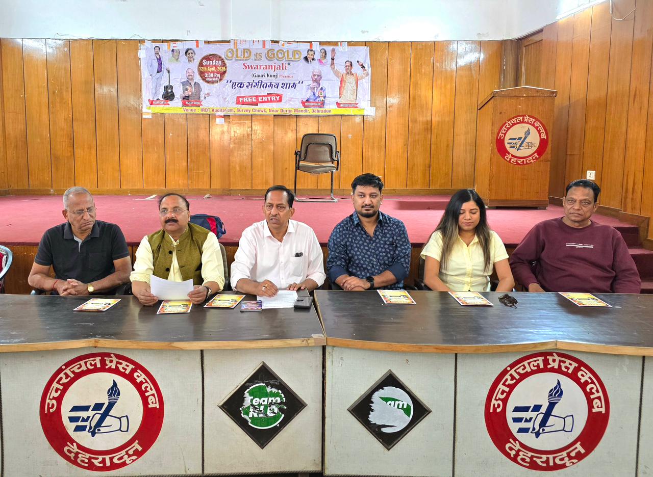 देहरादून। दून के संगीत प्रेमी 12 अप्रैल को दोपहर 3 बजे से सर्वे चौक स्थित आईआरडीटी ऑडिटोरियम में आयोजित ‘ओल्ड इज़ गोल्ड नाइट’ बाय स्वरांजली का आनंद ले सकेंगे। इस कार्यक्रम की घोषणा आज देहरादून प्रेस क्लब में आयोजित एक प्रेस वार्ता के दौरान की गई।